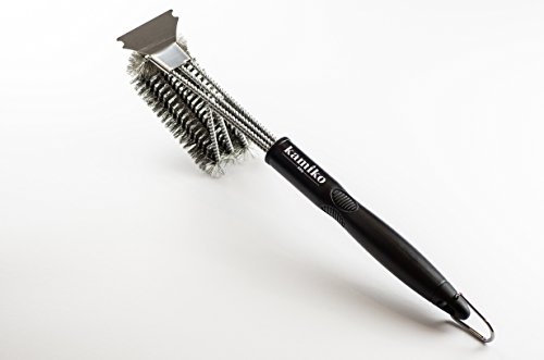 -kamiko- Die optimierte 4-in-1 Premium Edelstahl-Grillbürste mit integriertem Reinigungsschaber, langem Griff und besonders robusten Borsten. Perfekt für ein professionelles Reinigungsergebnis in kürzester Zeit. (44cm, Schwarz)